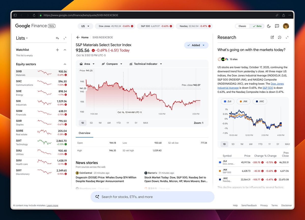 Google Finance 出了一个 AI 化的 beta 版本,可以把你关注的股票录入进去,然后可以基于这些内容去问东西,思路挺好的,可以试试,甚至帮你找到一些需要的新闻来看,帮助你更好的判断。