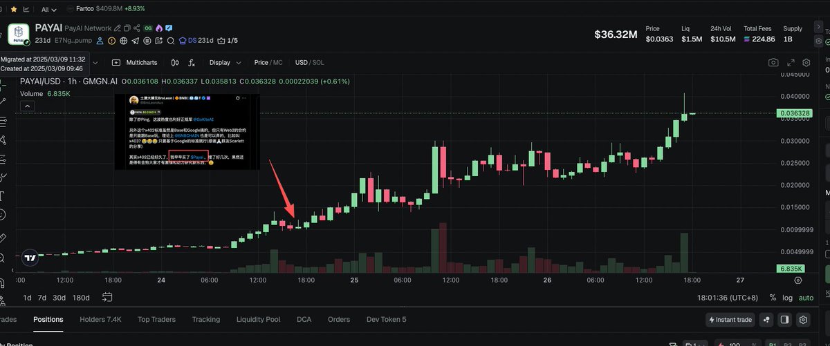 虽然没有统计,但我感觉基本上每波热点我 Call的标的胜率还行吧。这次x402 我没买上 $Ping ,但也不想追,因为在研究群里老早大家在402的研究里没有这个,但有 $Payai 。x402会是一波叙事,那是基于Ai Agents支付的阻碍被打破,Ping