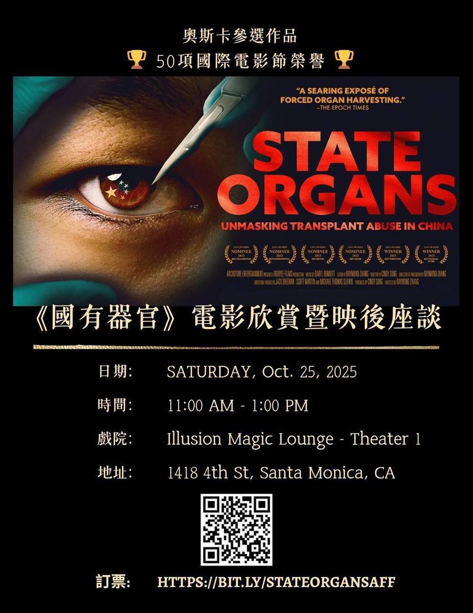 2025年10月25日观看了电影《国有器官》,影片记录了对宗教人士的迫害,讲述了活摘器官,令人震撼。影后与制片人、反活摘组织及大赦国际组织人员座谈,我提出:“影片视角还可扩宽,政治犯,维吾尔族,中小学生,胡鑫宇们,维权律师……”“期待能看到电影《胡鑫宇》,《709》,《中国律师》 。”