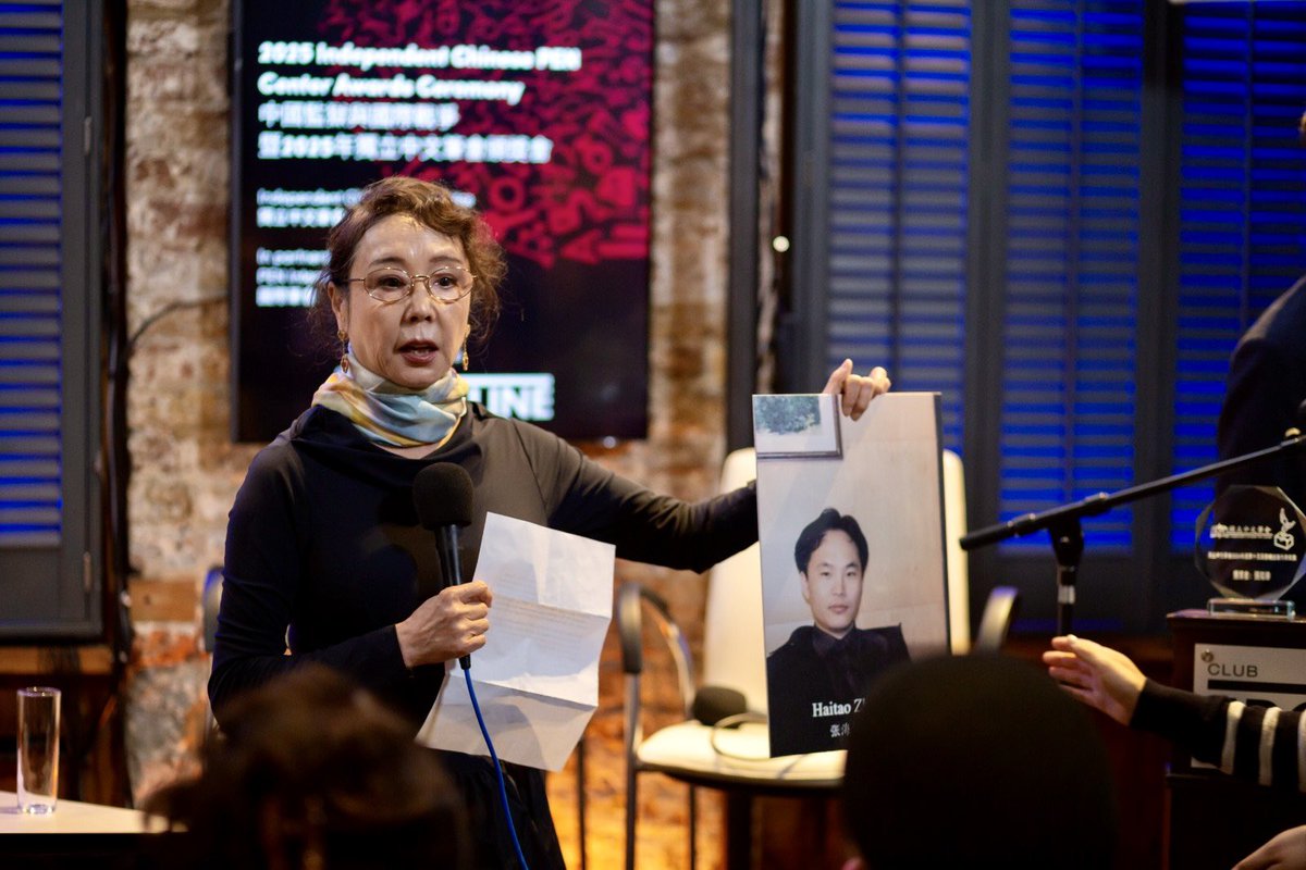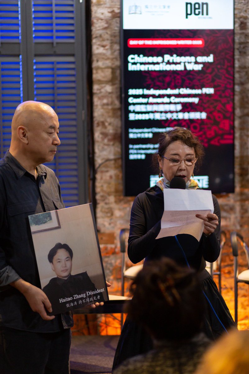 广受瞩目的著名作家严歌苓女士,专程从德国赶到伦敦的“中国监狱与国际战争”颁奖典礼暨主题研讨会上为张海涛颁奖。