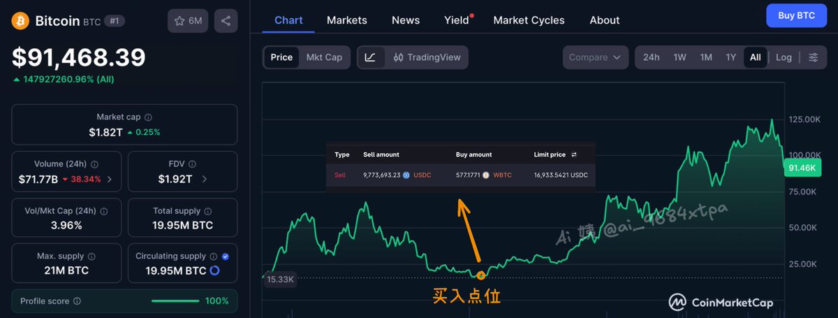 这真的是「买在无人问津处」了,直接买在近三年 $BTC 的底部 $16933🫡
