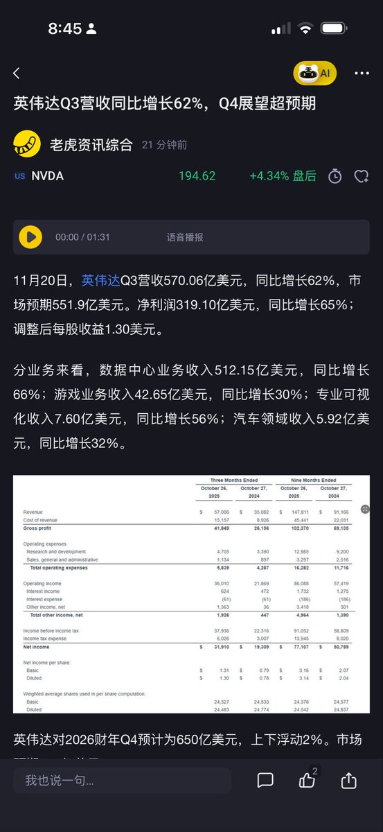 回澳洲有一点好,就是睡醒基本都在国内深夜的时候,跟老美时间更容易对上。今天是英伟达拯救了摇摇欲坠的 $BTC ,AI的伟大无需多言,泡沫🫧还可以继续
