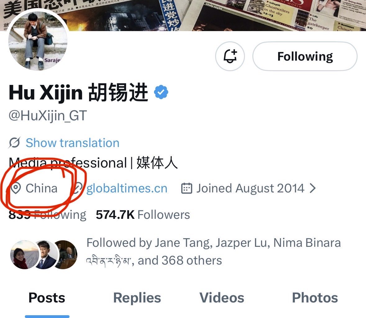 胡錫進的位置顯示很「高端」,但是設置上還是疏漏了一環。