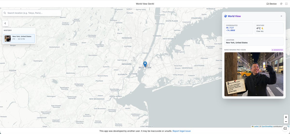 归藏做的这个 web app ,太有意思了。搜索框里选择全球任何地点,就会把你立即「挪」过去,还能根据实际天气着装。