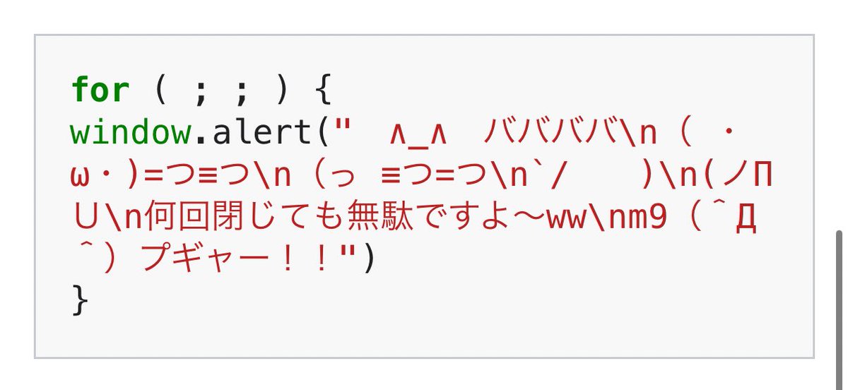 日本曾有个非常魔幻的事。2019 年兵库县警察抓了好几个中学生,理由是他们在论坛评论区写 Javascript 无限弹窗。该事件被国内外媒体报道,引起了大量抗议。有人把同样的代码放 GitHub 鼓励大家 fork 被警察抓,电子前哨基金会也发文谴责。日本黑客协会接受捐款帮他们打官司。最后人放出来了。
