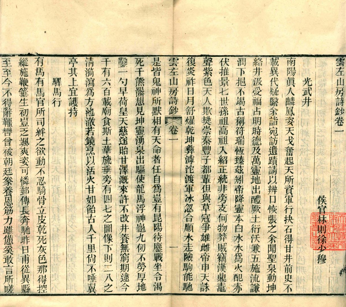 此《云左山房诗钞》由清代政治家、思想家林则徐撰。全书分诗钞八卷,收其诗作五百七十余首,大致按年代为序。后有附录三类:一为庆贺酬唱之诗;二为诗余;三为试帖诗。前附:上谕、谕祭文、御碑文、林文忠公像。此为清光绪十二年福州云左山房刊本。介绍下载: