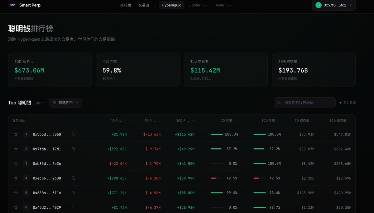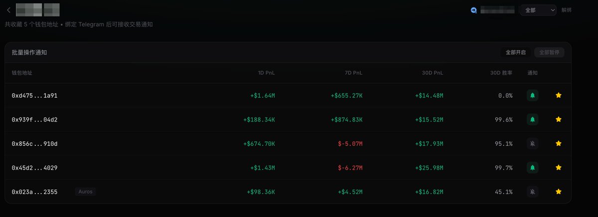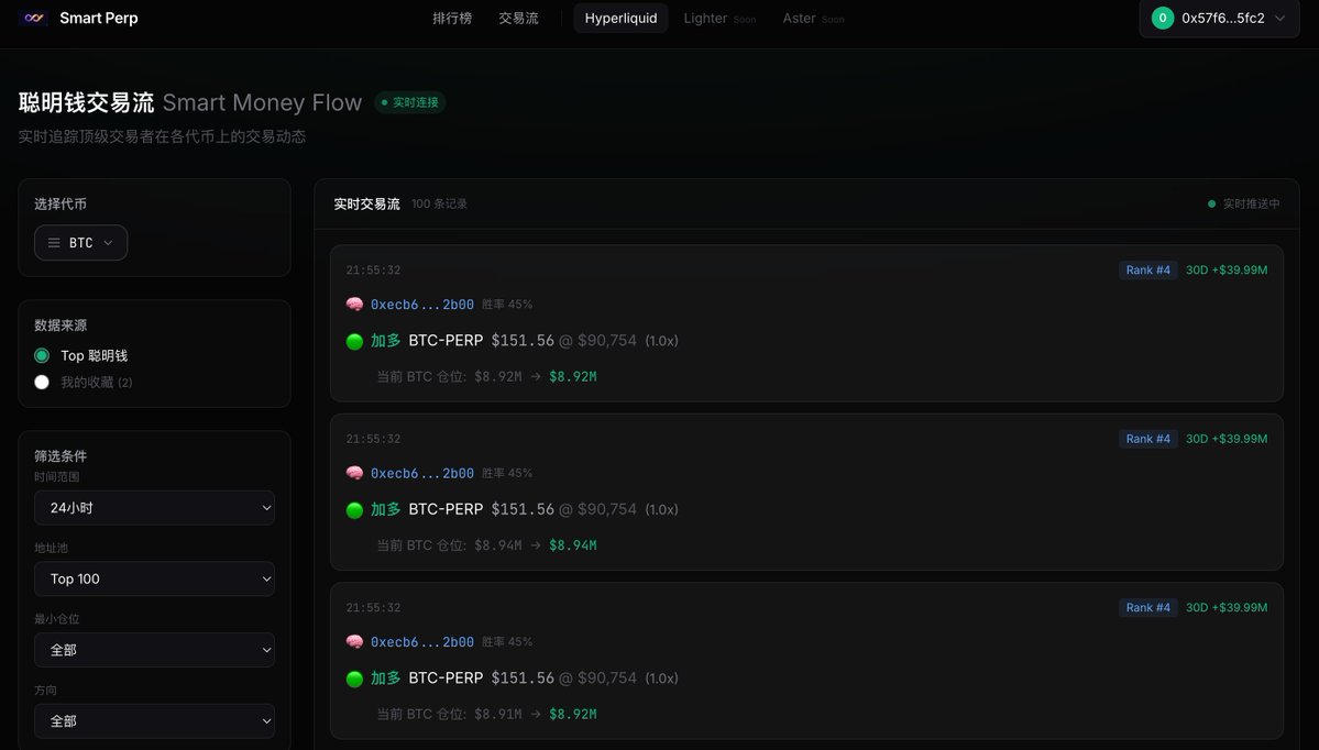 做了个Hyperliquid聪明钱追踪网站- Top 聪明钱排行榜- 实时交易流监控,支持币种、交易量等多维度筛选- Telegram 实时通知- 查看、收藏、备注任意钱包花了几天时间撸出来的,欢迎体验拍砖