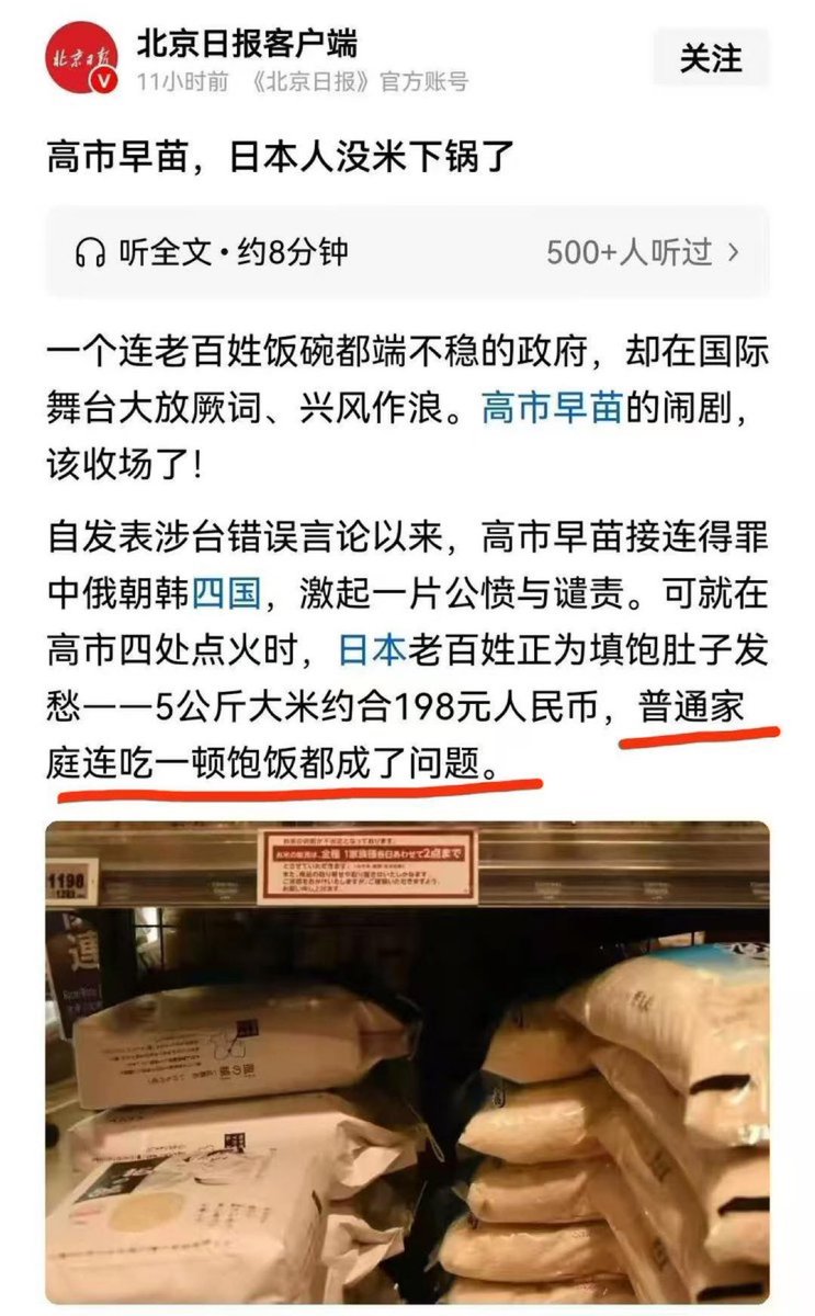 根据我的经验,5公斤大米可以吃至少一个月吧 那说明,日本人一个月收入不足198元人民币,简直比咱们中国8亿农民还不如? 以前我看这些“内宣”,还会真的生气 现在发现,其实你只要把他们当作又哭又闹,挨打了之后乱砸玩具的“小孩子”看 还蛮可爱的。。 当然需了,党可不是小孩子,关键时刻是可以杀人的 利用宣传喉舌,降低中国的人均智商,以至于下一代都成了智障 这绝对没有可以接受的任何借口