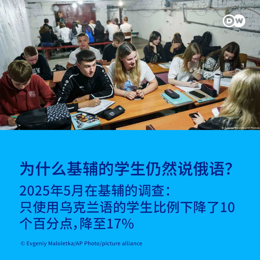 尽管乌克兰在俄罗斯发动侵略战争,推行乌克兰化政策,但在基辅的学校操场上,学生们还是经常说俄语。这是为什么?德国之声采访了学生、家长、教师和专家。👇