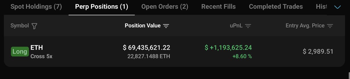 「1011 闪崩后开空内幕大佬」已加足马力⛽️1️⃣持仓增长至 22827.14 枚,价值 6916 万美元,平均开仓价 $2989.51,浮盈 119 万美元2️⃣5 分钟前再次充值 1000 万美元保证金,并挂单 11450 枚 ETH 的限价买单(3439 万美元),若成交持仓将过亿传送门 👉