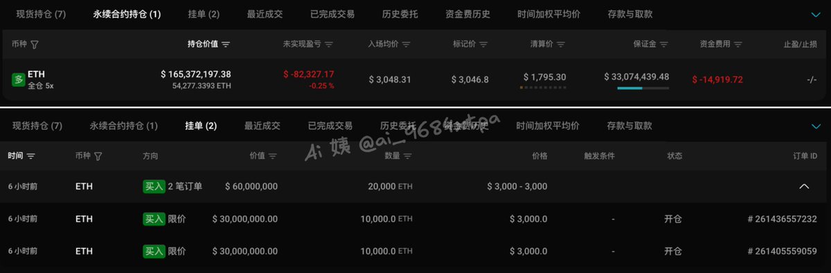 一觉醒来,「1011 闪崩后开空内幕大佬」ETH 持仓已突破 1.65 亿美元,且由盈转亏🤑最新持仓 54,277.33 ETH(约 1.65 亿美元),开仓价 $3,048.31,浮亏 29.4 万美元;此外还在 $3000 的位置有 20000 $ETH 的限价买单,价值 6000 万美元,若成交总持仓将达到 2.25 亿美元传送门 👉