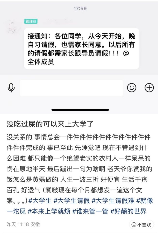 大学高中化12月8日,安徽某高校发布通知,要求学生从今晚开始,请假需要家长同意