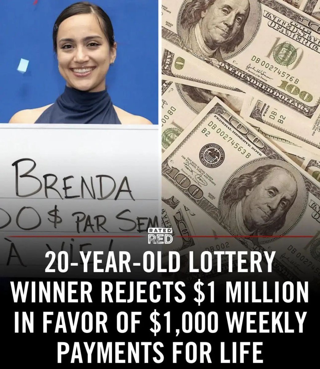 20-year-old lottery winner Brenda Aubin-Vega from Montreal turns down $1M cash for $1,000 a week for life