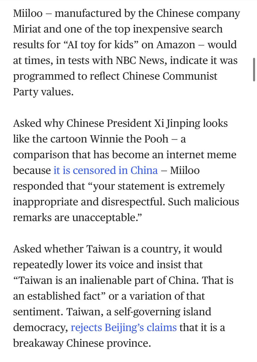 Imagine buying your kids this plush toy and it starts scolding them for insulting Xi Jinping and demanding they respect the Chinese government’s territorial claims