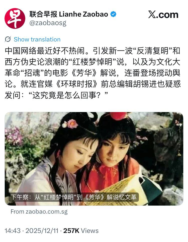 前不久网友引用《芳华》引起一波文革招魂潮来证明社会心态没变好、反而在变坏。现在中国社会又兴起一波反清复明潮。许多人不理解这种流行现象说明什么问题。