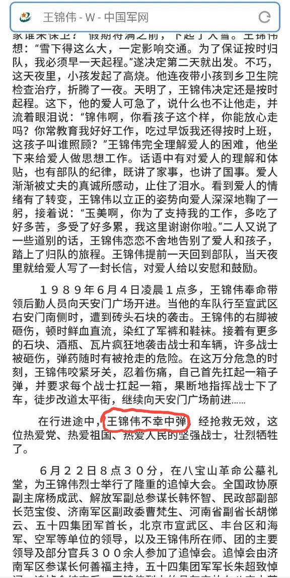 据中国军网,八九六四大屠杀,解放军王锦伟被戒严部队自己人的子弹打死了,我们不怀念他,他将永远被钉在历史的耻辱柱上!👤 来自: J ack
