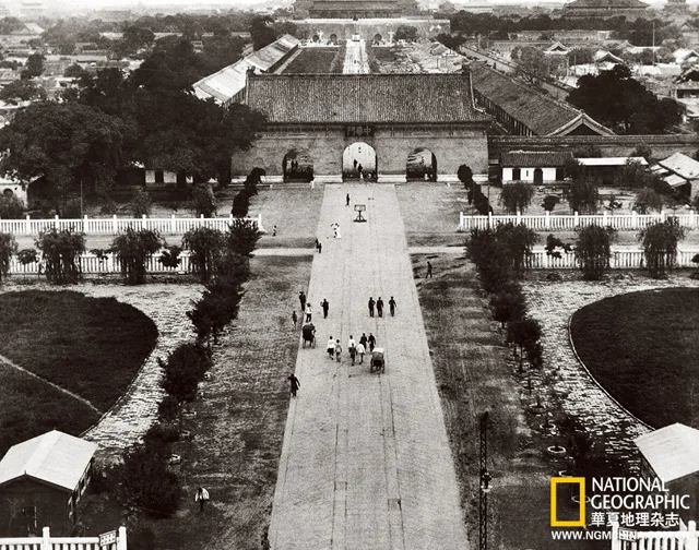 北京故宫(1920年11月号)恢弘富丽的皇城被围在矩形的宫墙内,图中靠前的一道门是天安门的外门,民国时称其为“中华门”,门后到天安门间有千步廊,是过去朝廷的中央官员办公之地。---国家地理镜头中的民国