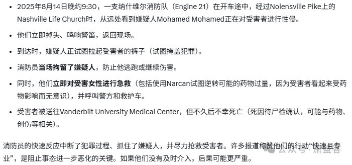 这起事件(纳什维尔教堂台阶强奸致死案)发生在2025年8月14日晚上约9:30左右。一名34岁女性在纳什维尔一座教堂正门台阶上,当街、在路灯下,被强奸致死,整个过程被消防员当场撞见。