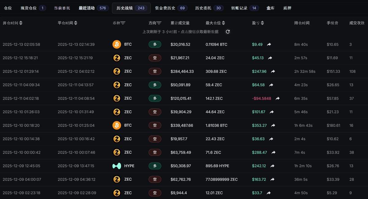 《Hyperliquid跟單日記》- ZEC短線狙擊手