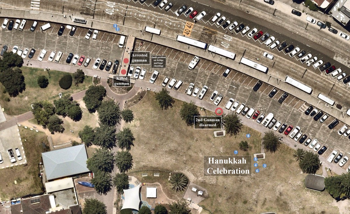 Based on available footage, this is a quick map of the shooting that took place this evening at Bondi Beach.