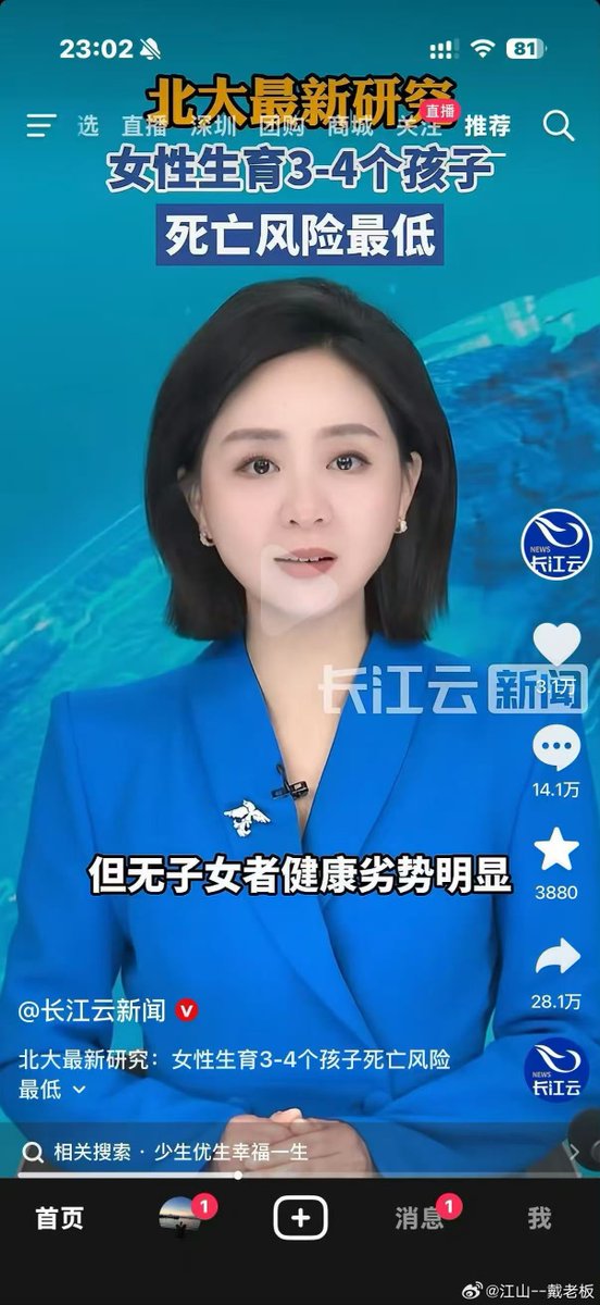 生娃可以长高,可以降低死亡率。计生委反过来宣传了。以前可不是这么说的。