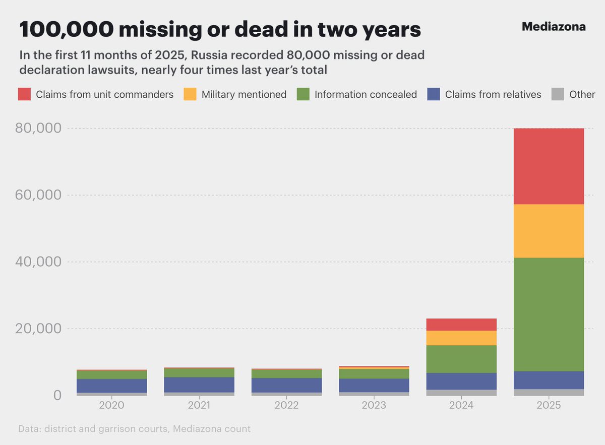 俄羅斯法院目前已收到近9萬份關於失蹤軍人死亡或失蹤的報案
