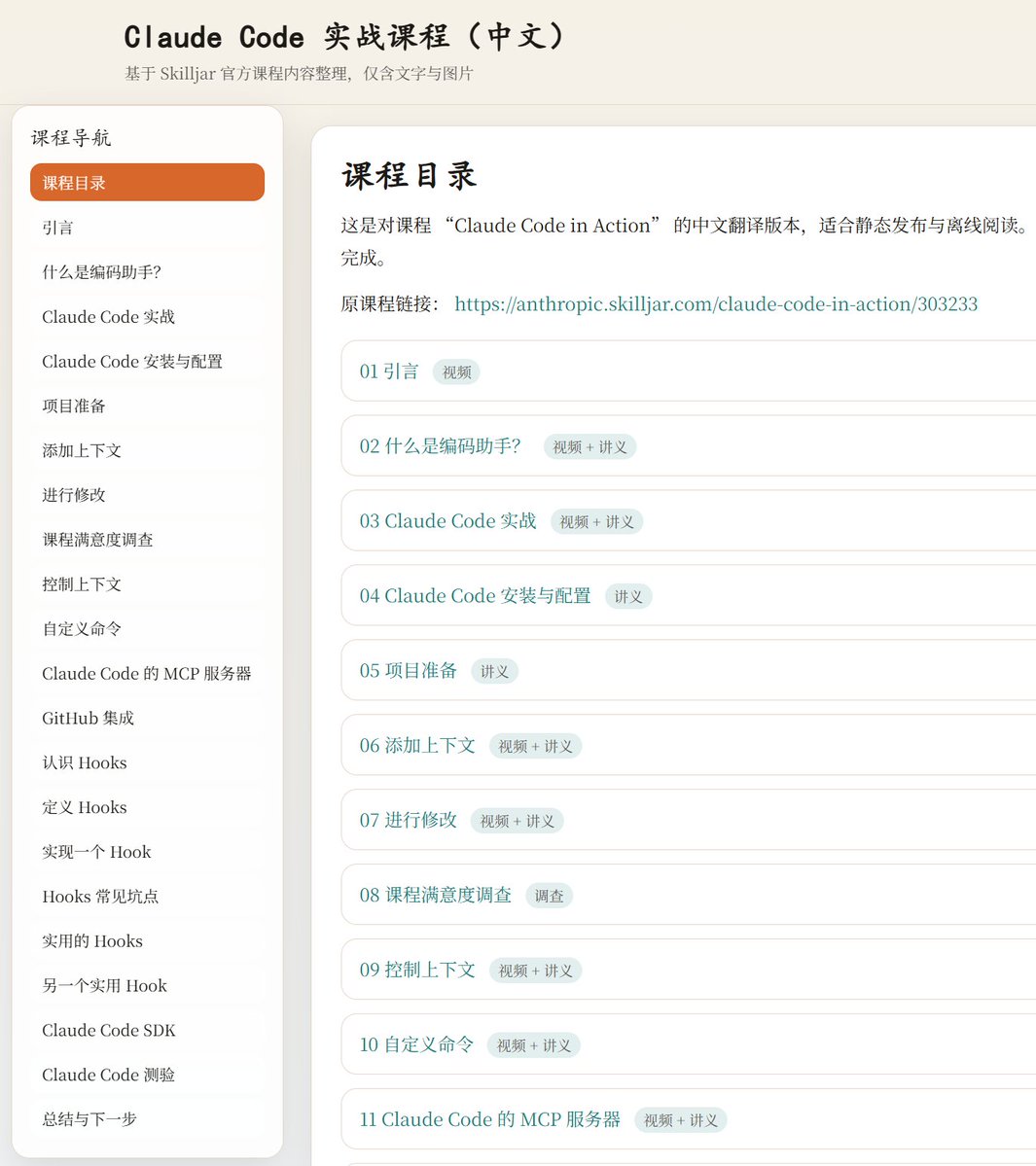 把 Anthropic 官方出的 Claude Code in Action 翻译成中文版了。