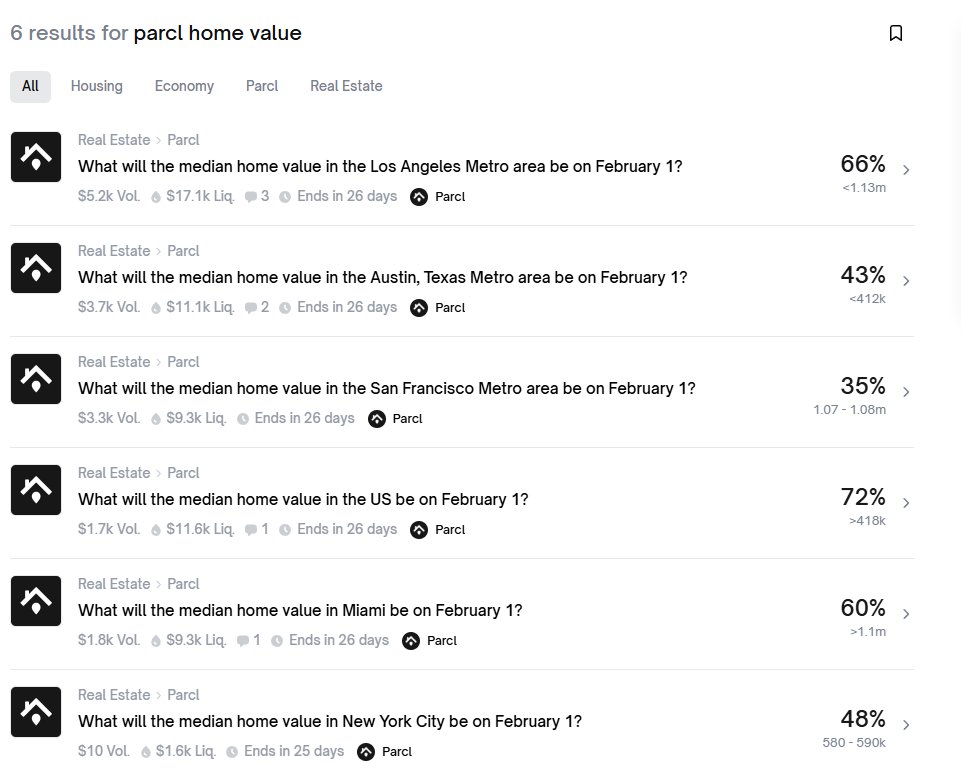 从合作声明来看,结算数据由 Parcl 提供,每天更新,比传统房价指数快。每个市场都有专门的结算页面,写清楚最终数值、历史走势、计算方法。