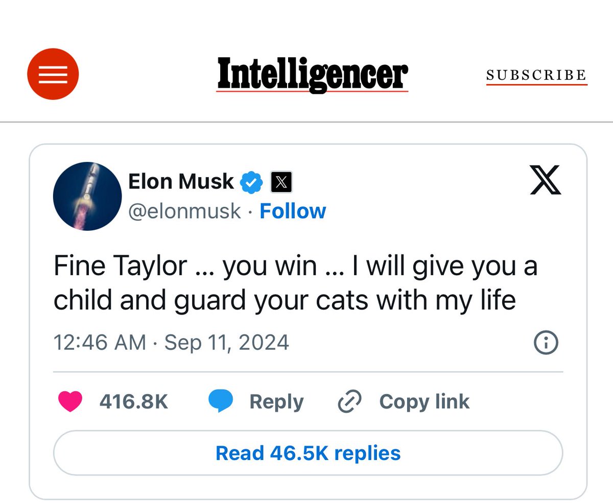 前不久马斯克对那位女歌手说:“我给你一个孩子 …… ” (见图)在他们的世界里,有钱就什么都可以做。
