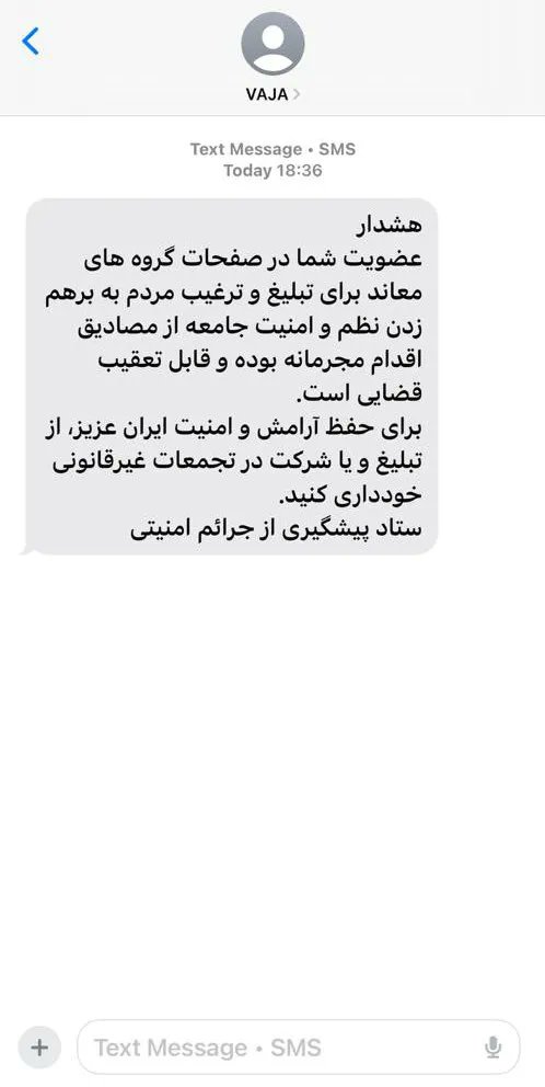 伊朗警政系统发送短信恐吓民众,扬言参与示威抗议活动的行为均属违法犯罪。