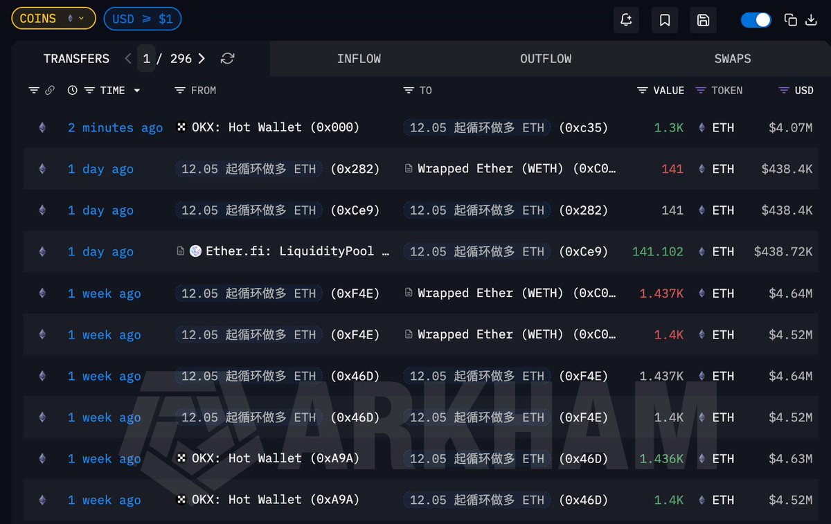 押注 $ETH 的巨鲸时隔一周再次增持 1299.6 枚 ETH 5 分钟前他以 $3129.64 从 #OKX 提出 ETH 后,2025.12.05 以来累计建仓的 ETH 数量增加到了 51,451.6 枚,总价值 1.61 亿美元,平均成本约 $3117.3 ;当前浮亏 94 万美元,相较上周的 ETH 短期高点,浮盈已回撤超 900 万美元 钱包地址 https://t.co/NStv3bR6NR 本文由 #Gate 大门交易所 | @Gate_zh 赞助