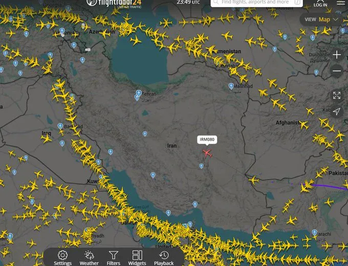 1 月 14 日,在伊朗空域关闭的情况下,中国仍派出两架飞机飞往伊朗。航班信息显示,马汉航空分别从广州和深圳起飞的航班,正在飞往德黑兰。