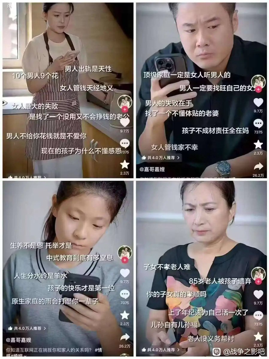 信息茧房这一块啊,按我兄弟康德的话说,人真正被启蒙的那一刻,就是摆脱了自我招致的不成熟,换言之就是要敢于运用自己的理性。 而这种短视频信息茧房,其本质不是让你运用自己的理性,而是要带给你一种立场上的快感,同时又把某些家庭的经验称述包装成一种普遍法则。 通俗点说,这种信息茧房不仅是对自己理性的侵蚀,同时又要培养人只在乎立场,不培养理性,看见有嘴替就疯狂点赞转发的习惯
