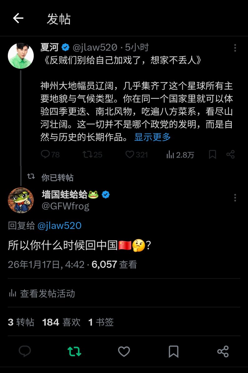 夏河拒绝回答我:他本人何时回中国🇨🇳,并拉黑了我🐸