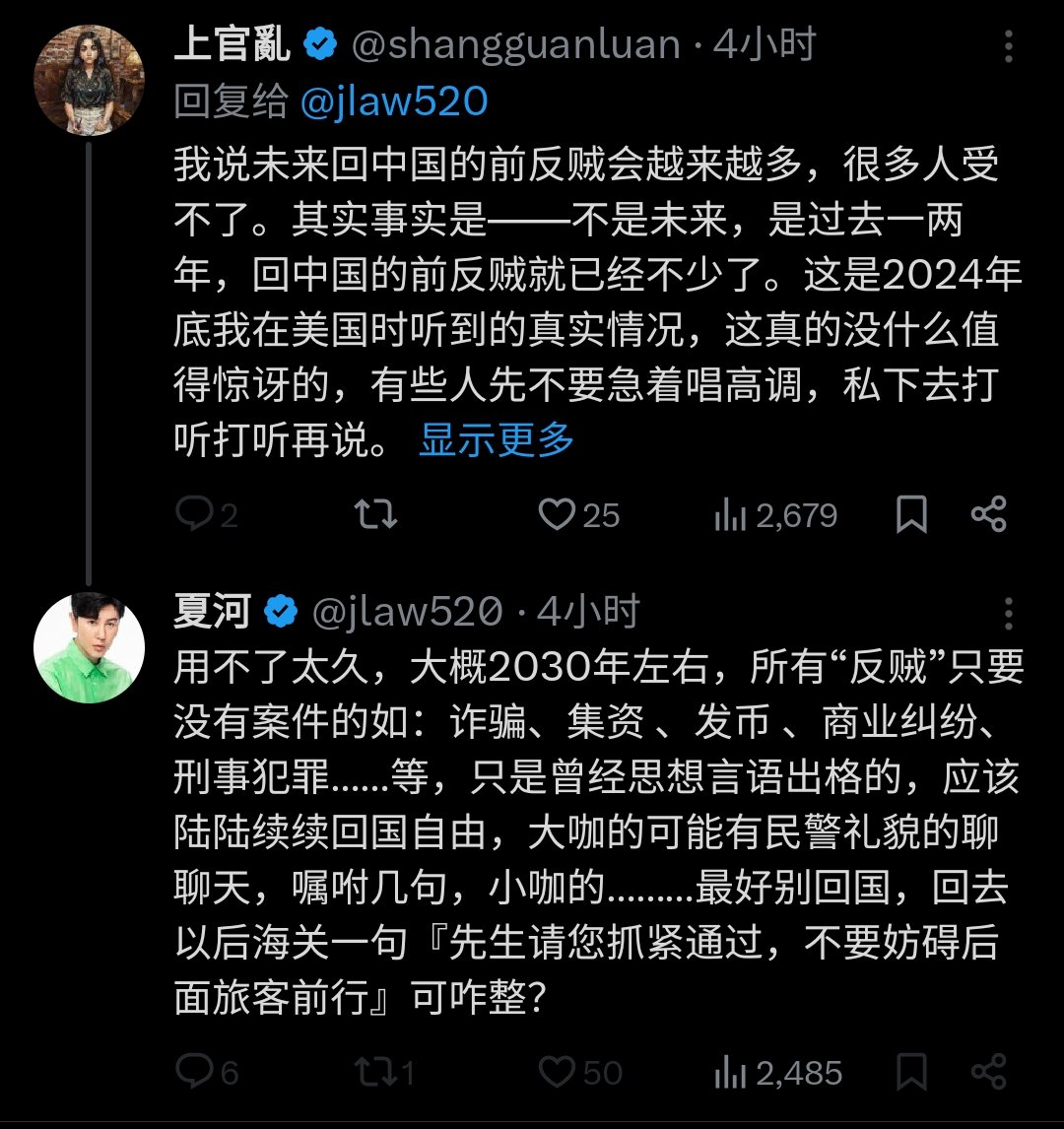 然后和上宫乱一唱一和:所有反贼除了XXYYZZ……的,在2030年左右都可以回中国🇨🇳🤗