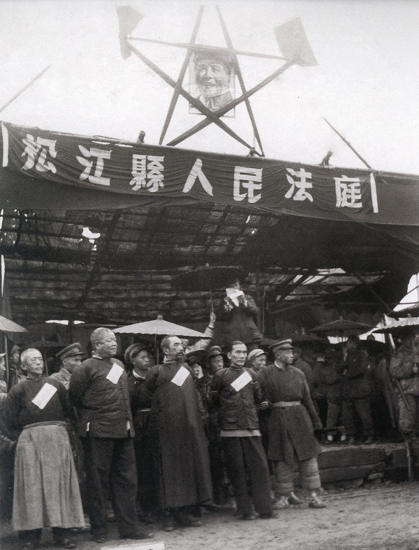 1950.12 松江县人民法庭举行审判反革命分子公审大会法庭现场。拍摄地点:松江火车站广场。