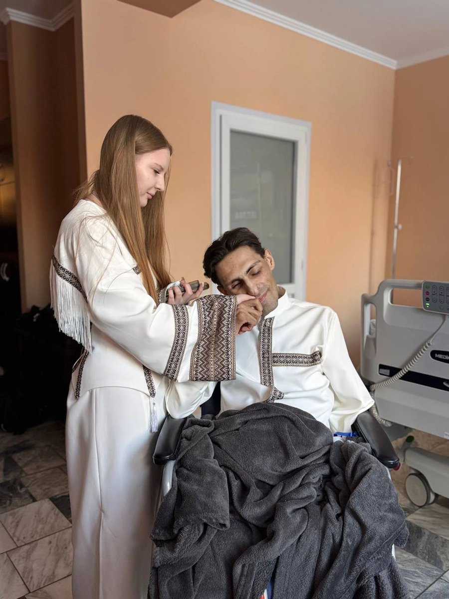 烏克蘭一位名叫丹尼斯的重傷士兵與烏克蘭女孩米萊娜結婚了👰