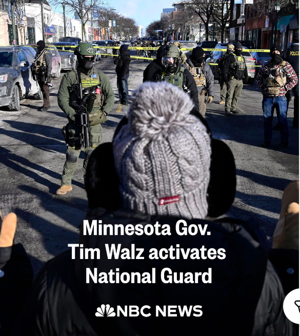 今天早上在ICE当街枪击无辜美国公民后,蒂姆·沃尔兹州长启动了国民警卫队。