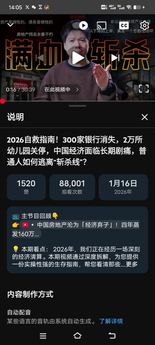 网友投稿:1月23日,B站一博主因上传有关中国斩杀线的视频,随即被B站永久封禁。