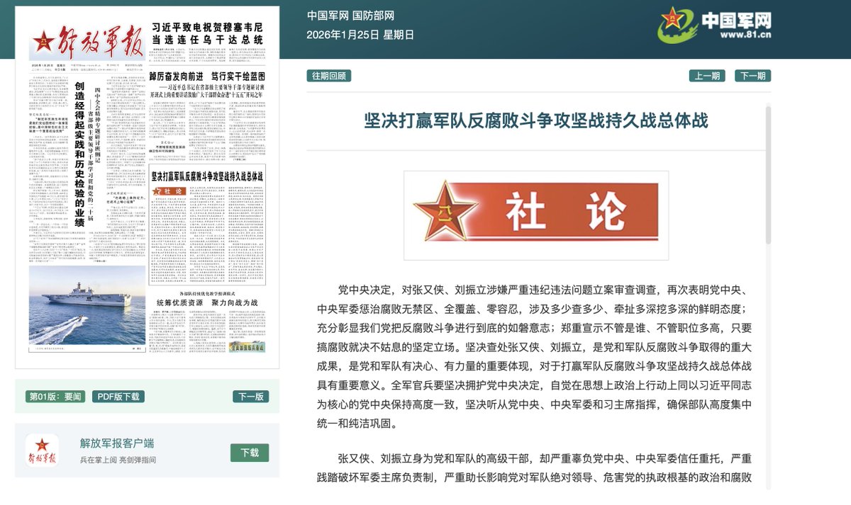 【越清洗越恐惧,越恐惧越清洗】认真读了解放军报1月25日的社论,认为这篇社论宣告了张、刘的政治死刑,表明这是一场仅次于林彪事件的大地震,更是习近平走向晚年斯大林、毛泽东老路的标志。以下是我的几点看法,分享如下: