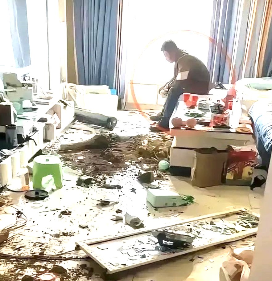 一对夫妻吵架,老婆把客厅砸了一个稀巴烂,同时发抖音配上了忧伤的音乐。还好网友机智,赶紧留言:那个绿色凳子还要吗?不要的话能不能寄给我?
