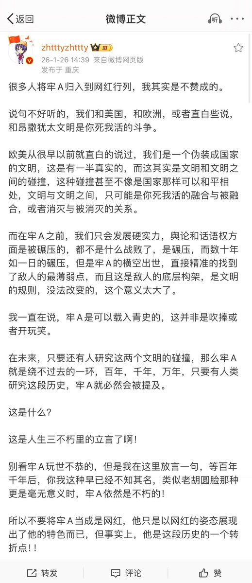 网文《无限恐怖》的作者,也加入了 #牢a 粉丝 #大斩杀运动 的队伍,反对浙江宣传将牢a认证为网红,认为牢a可以载入青史(非反串捧杀)😅😅😅