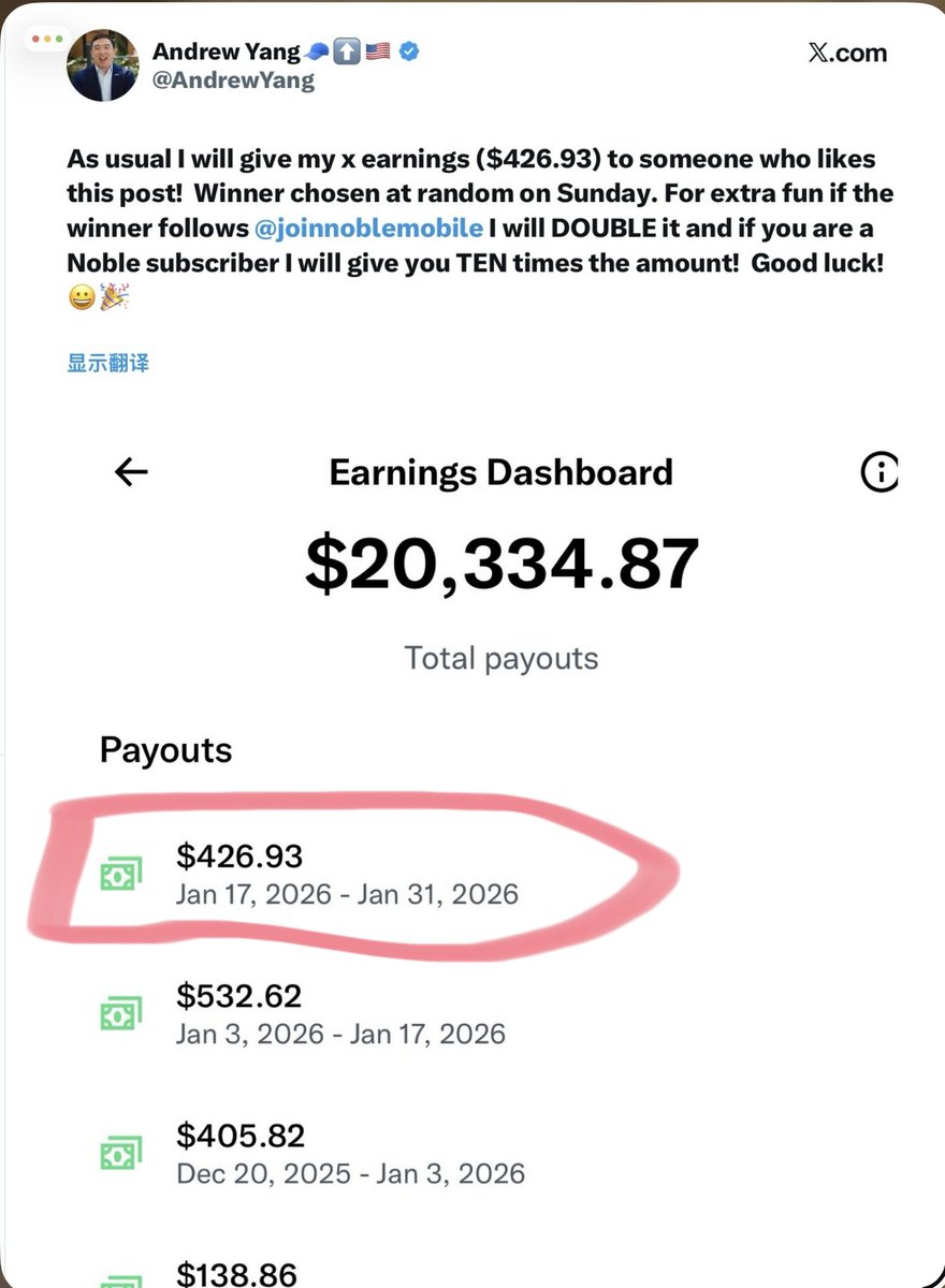这个华人总统候选人杨安泽先生,177万粉丝,收益才426元
