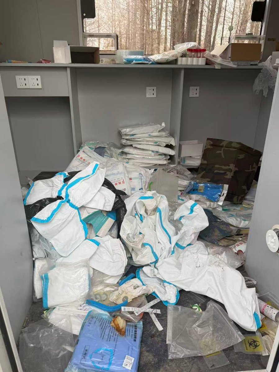 网友投稿:江苏扬州的扬子郊野公园,网友发现了一处未拆的核酸检测亭,里面甚至还有一盒待做化验的样品。