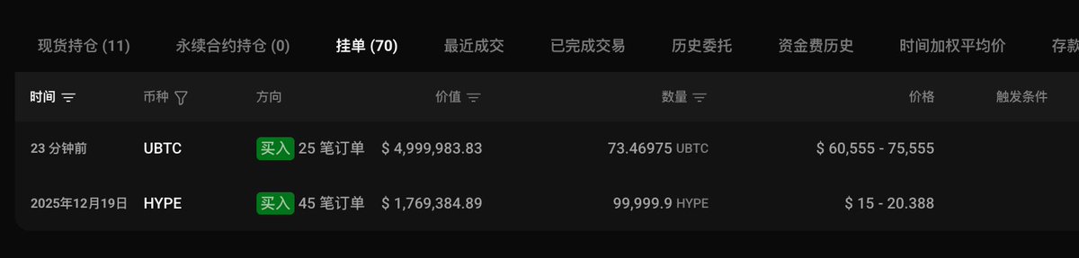 已经有地址已经准备好抄大底了吗😂 地址 0xd90…2D975 半小时前向 Hyperliquid 充值 600 万枚 USDC,随后挂了两个买单 ▶︎ $BTC :跌至 [$60,555 - $75,555] 区间买入 73.46 枚,约 500 万美元 ▶︎ $HYPE :跌至 [$15 - $20.38] 区间买入 10 万枚,约 177 万美元 现在只能希望不要被他抄到底了;传送门 👉 https://t.co/sg1jHQyYMg