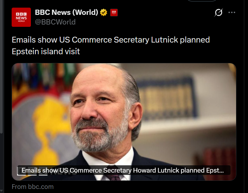川普的马屁精商务部长卢特尼克曾计划访问爱泼斯坦岛。