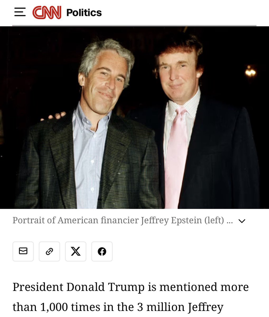 这次公布的“爱泼斯坦档案”文件提到了川普名字超过一千次