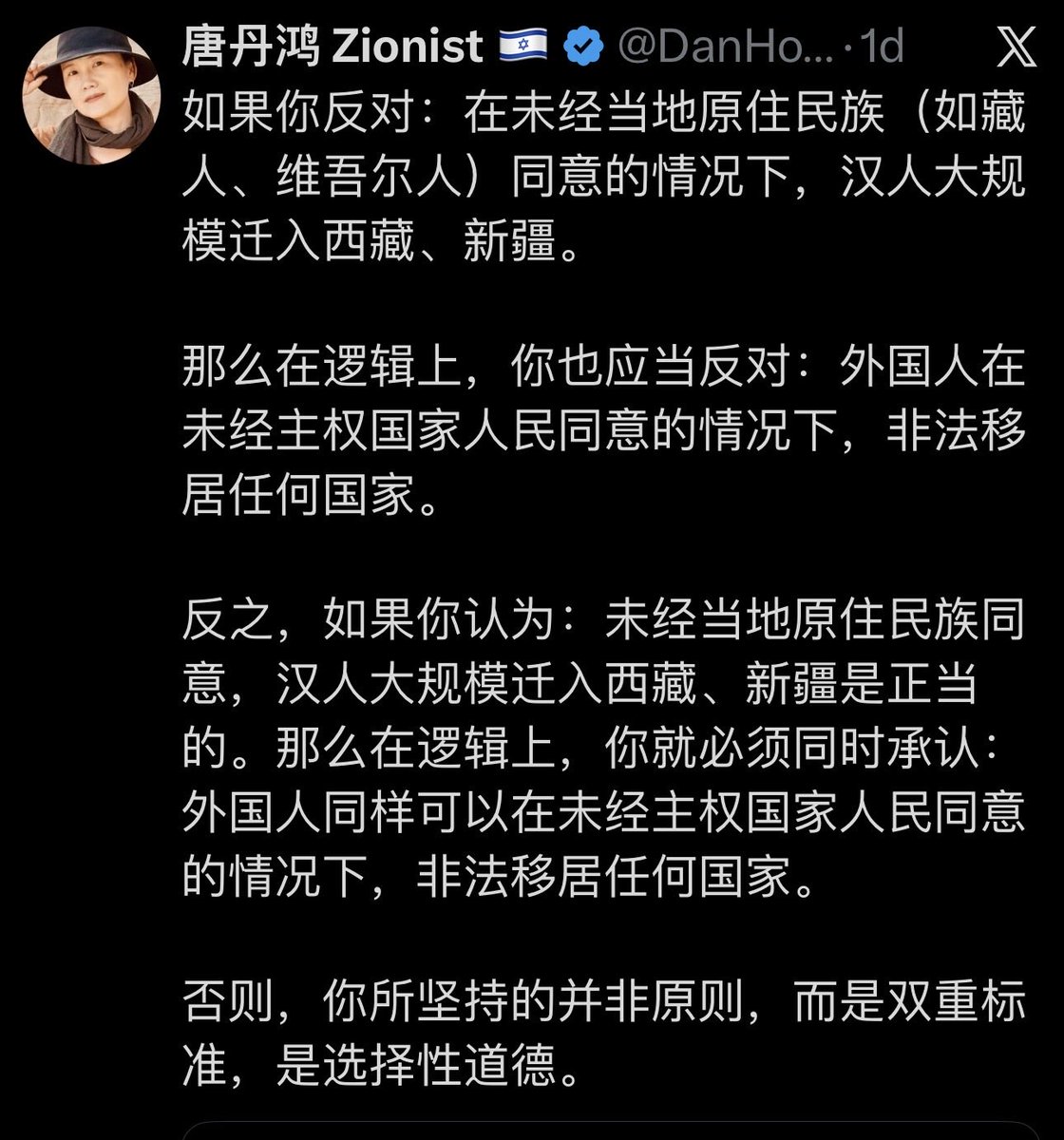 唐丹鸿还在不遗余力地为以色列在巴勒斯坦地区的种族灭绝的洗地!