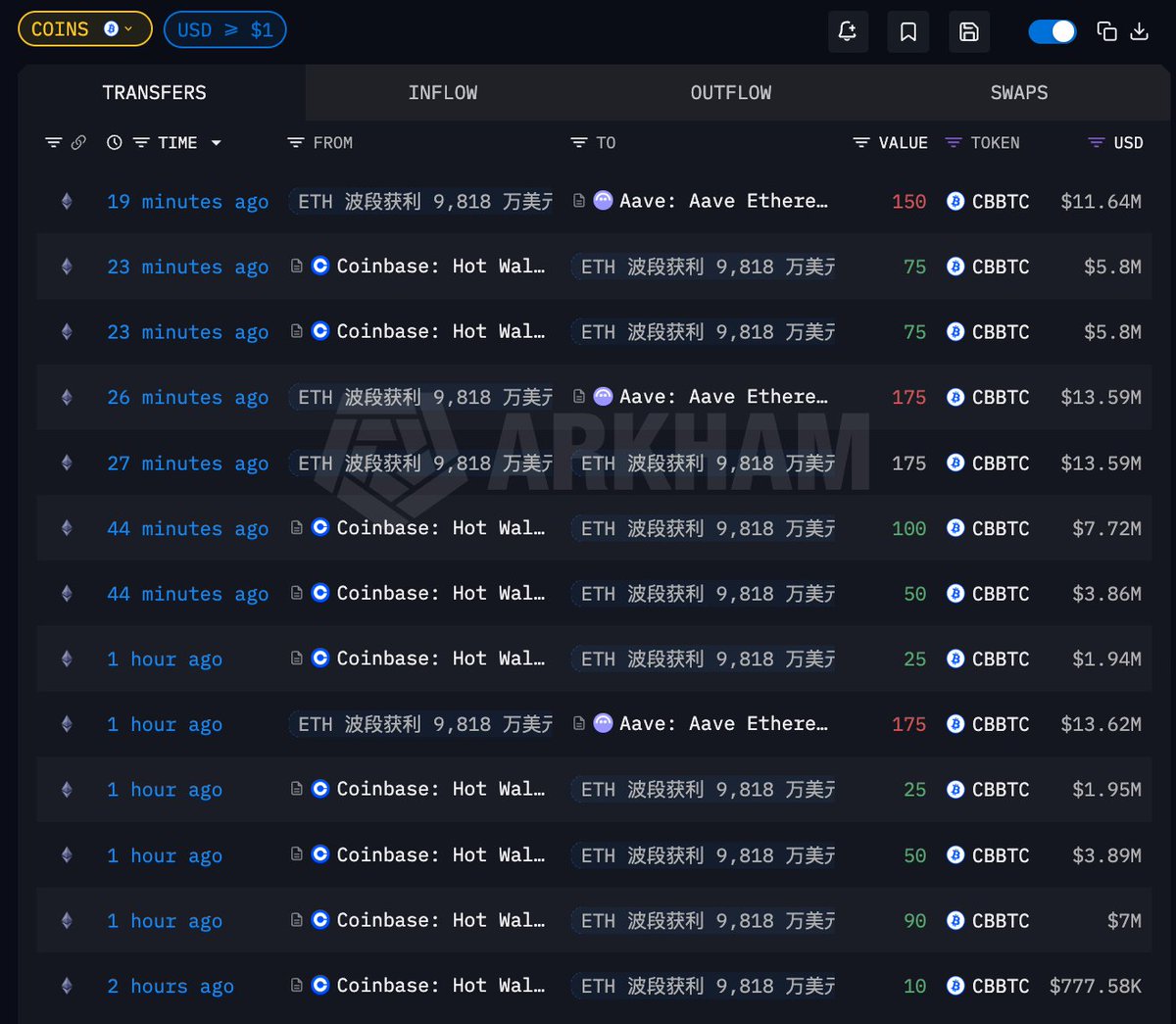 ▶︎ 过去 2 小时首次建仓 500 枚 cbBTC,价值 3874 万美元,均价 $77484.46