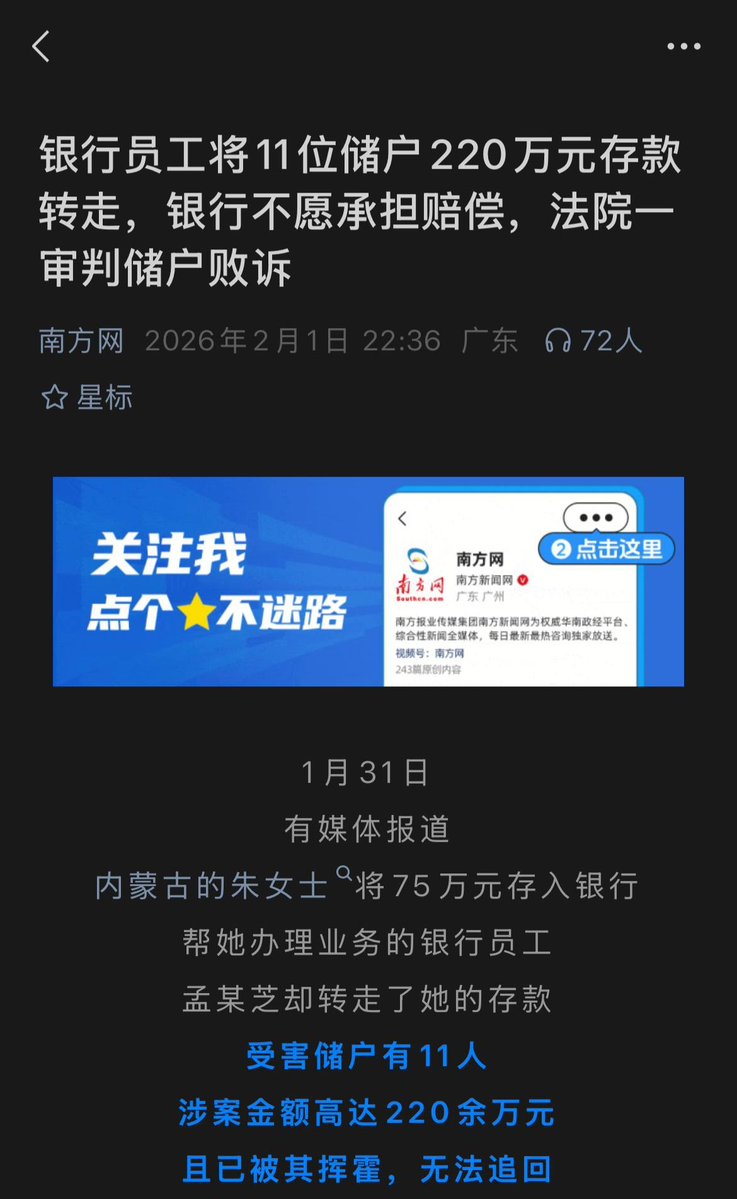 储户存银行里的钱被员工转走了,银行不赔偿,法院居然能判储户败诉😅😅